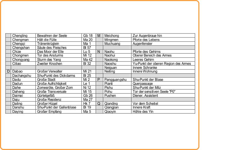 Chinesische Namen der Akupunkturpunkte, sortiert nach Alphabet